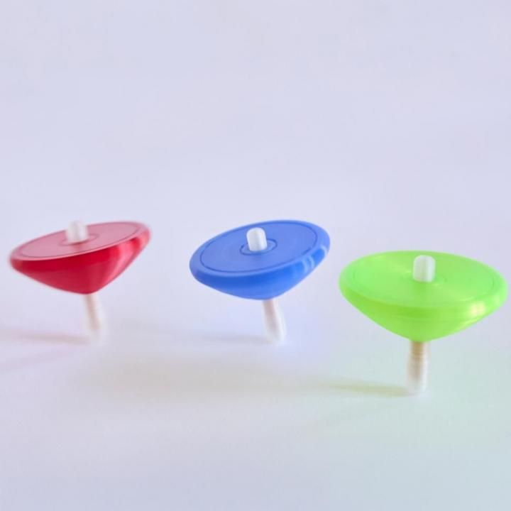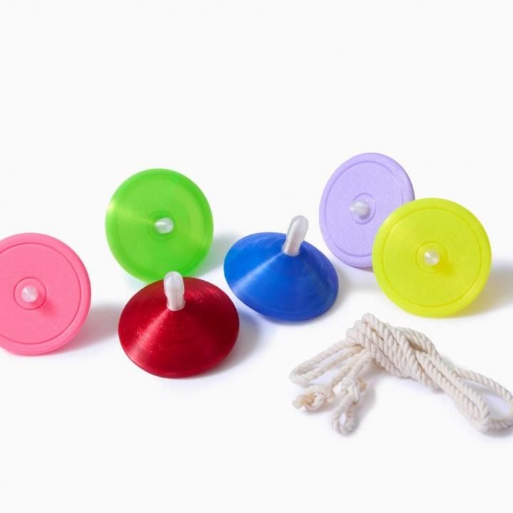 初心者でもまきやすい紐、3Dプリンタで作成した投げやすく回りやすい形、美しい色、軽くて柔らかく床を傷つけない素材。
