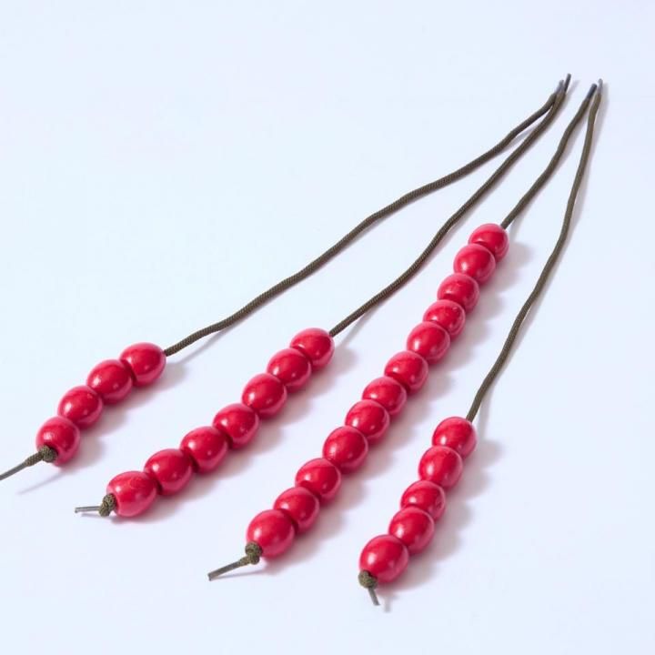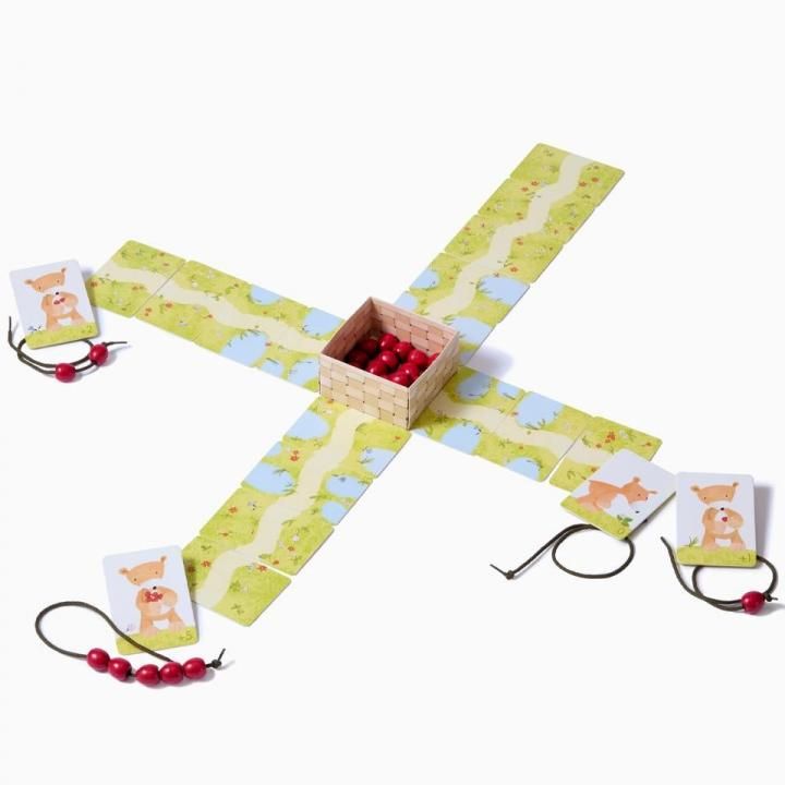 ころんとした可愛らしい木の実を使い、集める、数える、紐に通す、受け渡すといった様々な動作を通して、遊びながら多様なことを学べるゲームです。