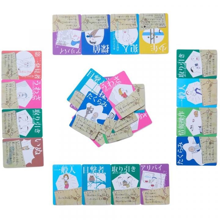 ババ抜きのように犯人が移動していくので、誰がもっているのか表情を伺いながら推理するのも楽しいです。カード効果がシンプルなので手軽に多世代(小学生からシニア)で遊べます。