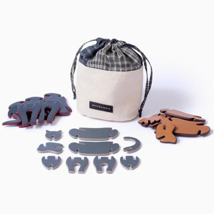 回収した革製品をリメイクした組み立て式の動物パズルです。